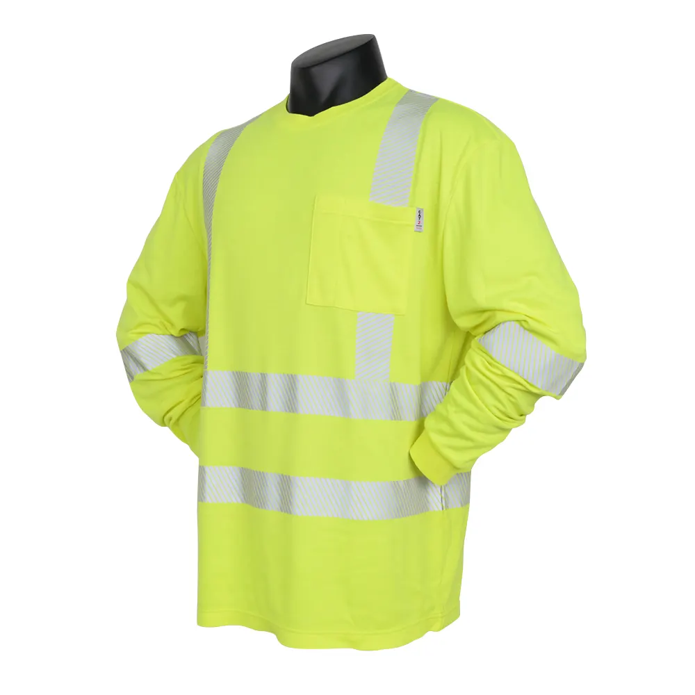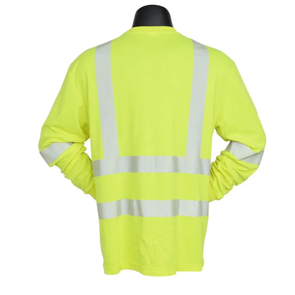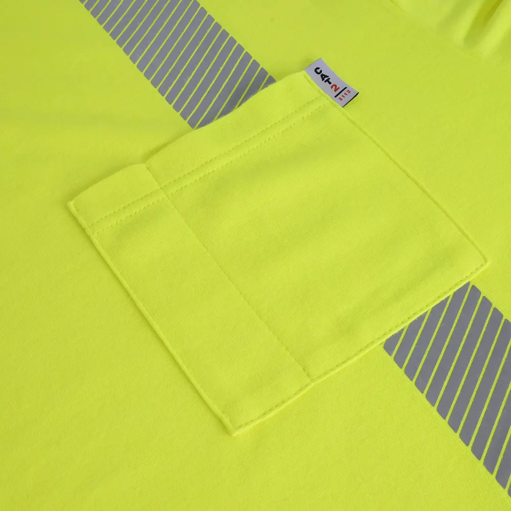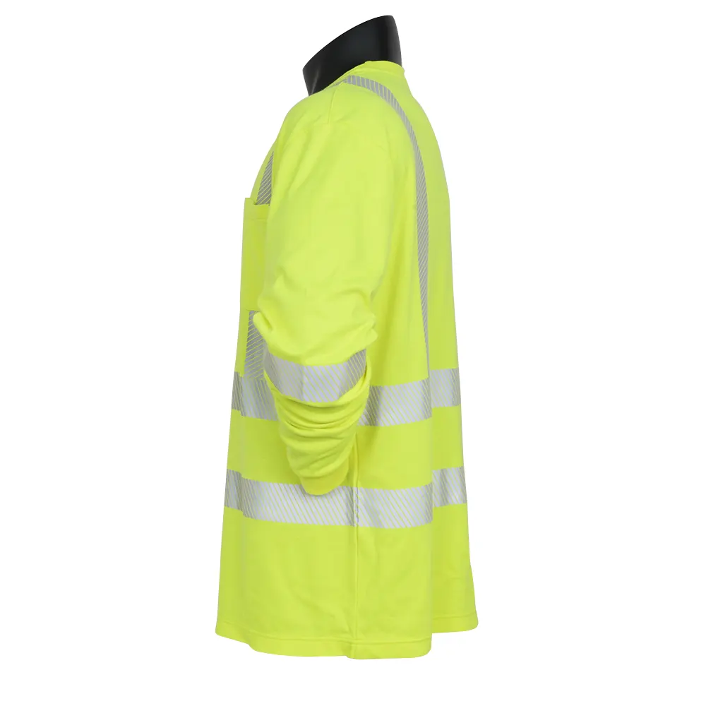 The ULTAC XN1005 Hi-Vis Safety T-Shirt offers reliable visibility and comfort for demanding work environments. Designed with fluorescent yellow fabric and 360° reflective tape, it ensures workers remain visible during day and night. The long-sleeve design adds protection, while the chest pocket provides convenient storage for tools or essentials. Its breathable cotton-blend material helps maintain comfort even during long hours, making it suitable for construction sites, roadwork, and traffic control tasks. With durable stitching and a professional look, this reflective work shirt is ideal for companies seeking bulk or OEM uniform solutions.