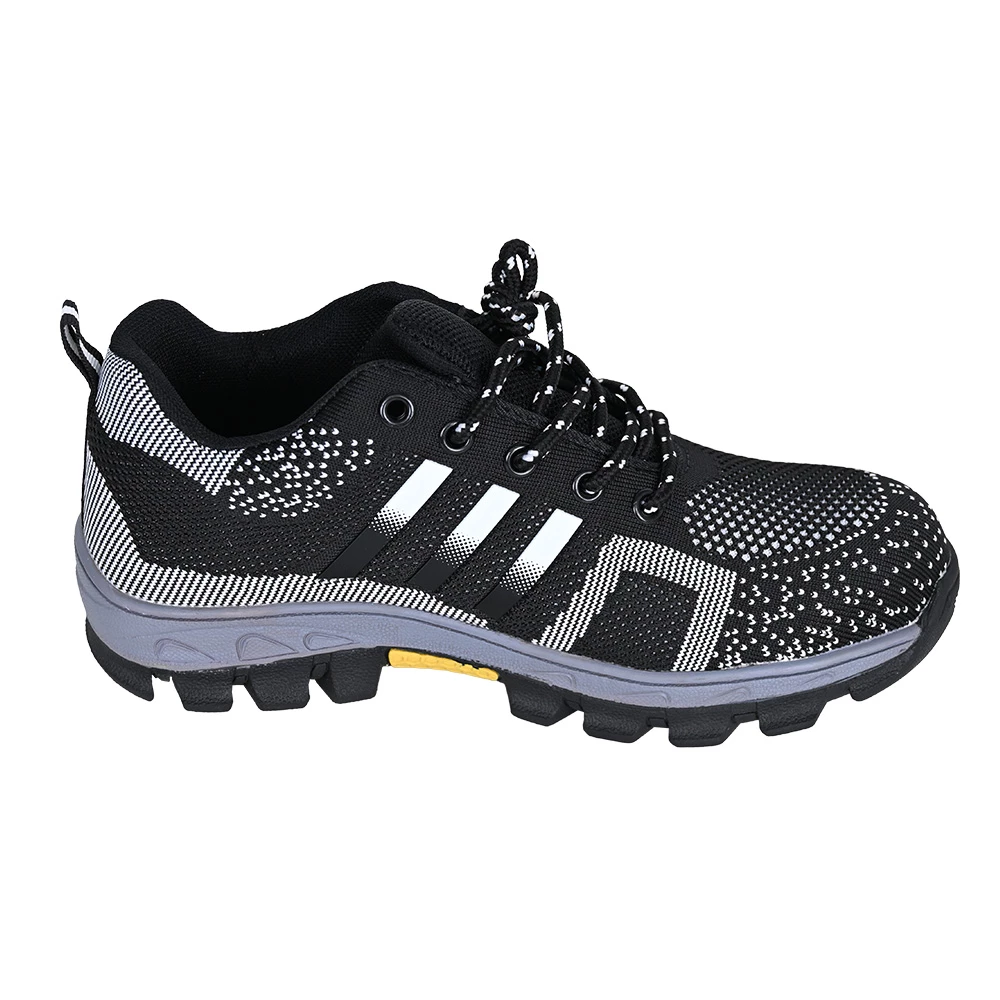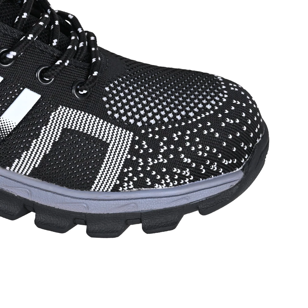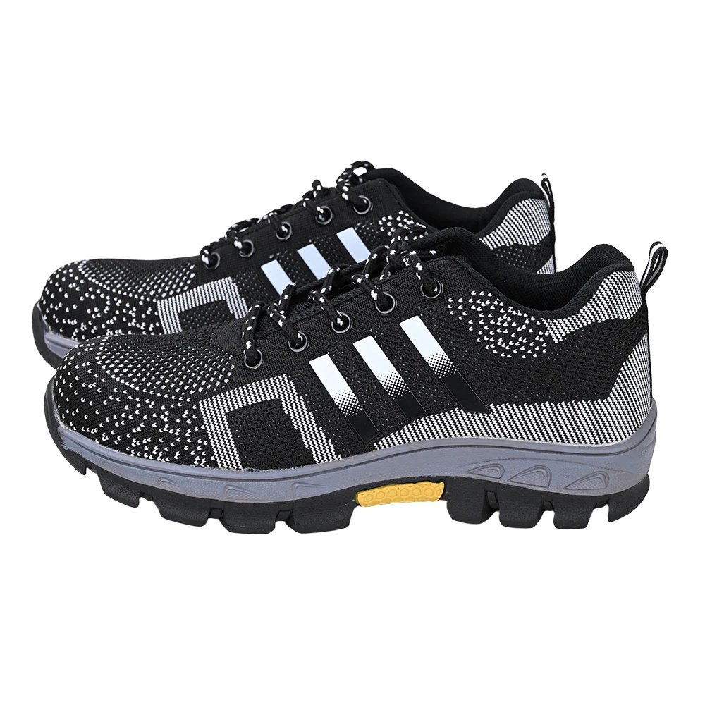 Featuring a fly knit, offset printing upper, rubber outsole, steel toe cap and steel plate, these women’s safety shoes are comfortable and breathable for mining and construction work.