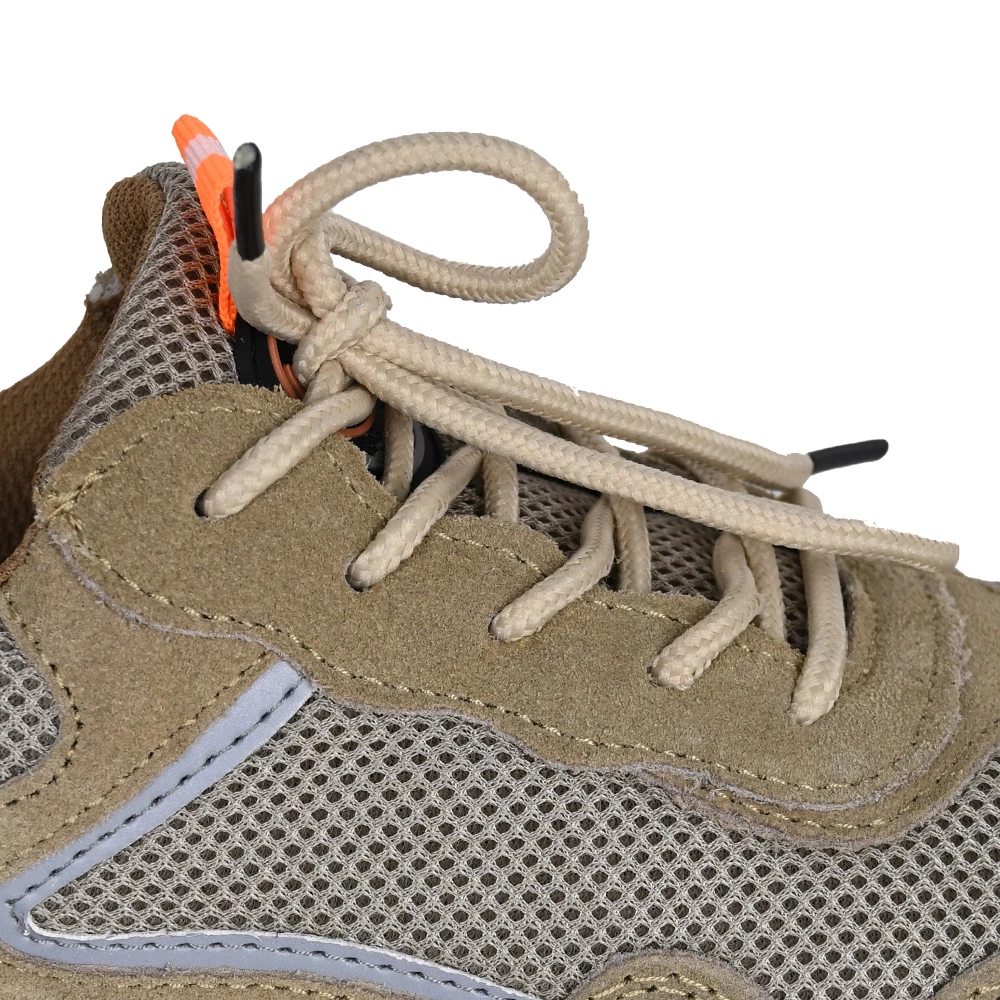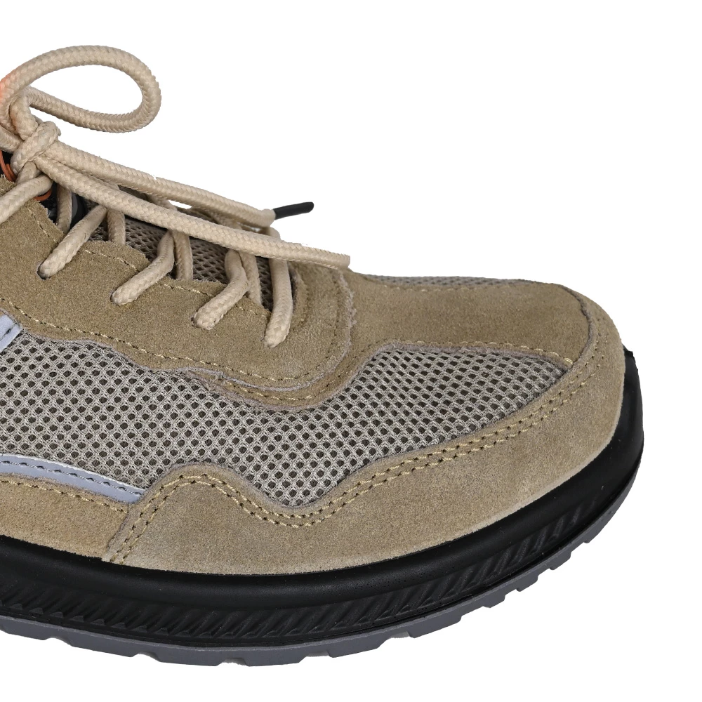 Featuring a mesh suede, upper, dual-density PU outsole, steel toe cap and kevlar plate, these women’s safety shoes are comfortable and breathable for mining and construction work.