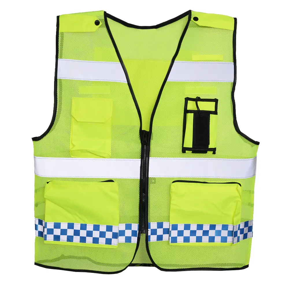 ULTAC XP1017 Hi-Vis Security Mesh Safety Vest in Fluorescent Lime with Blue/White Checker Tape