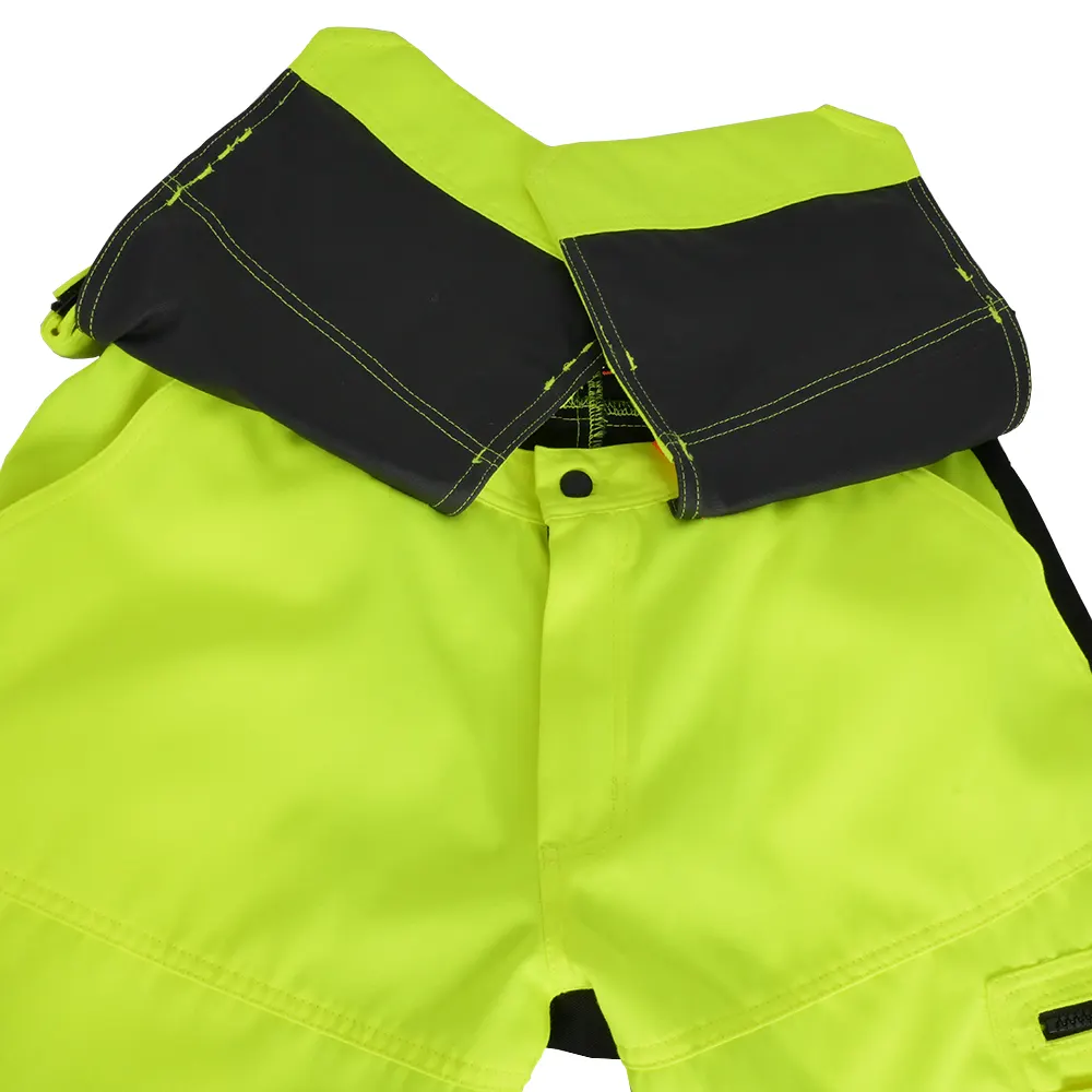ULTAC XN1004 Hi-Vis Reflective Work Trousers/Pants, Fluorescent Yellow with 2 Bands, Holster & Cargo Pockets, Reinforced Knees — Construction/Road/Utility
